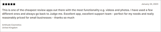 The best review app for Shopify is Judge.me. This apps help you collect and display customer reviews, enhancing trust and conversion rates.